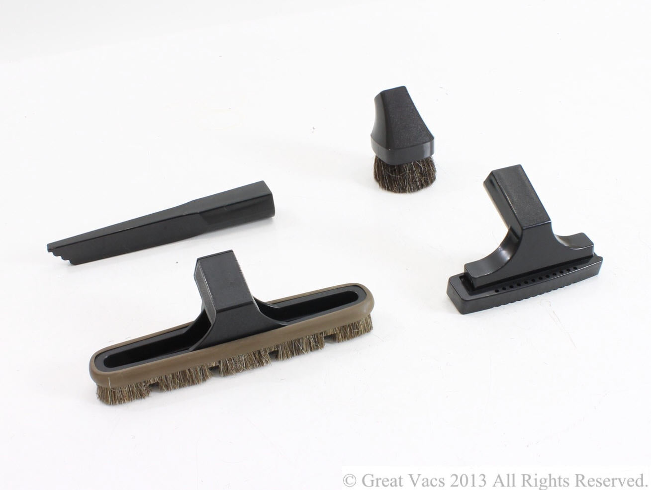 New GV tool kit is made to fit all models and comes with everything you'll need to keep your house tidy. The Floor and Wall Brush works great on all hard surfaces. The bristles are soft enough to be used on delicate surfaces without damage. The Dusting Brush is used for keeping your home dust free by cleaning overlooked places, such as windowsills, lamp shades, light fixtures, moldings, houseplants, screens and curtains. The Upholstery Tool Cleans Deeply embedded dirt that can reduce the life and vibrancy of fabric. Fantastic for removing dirt from upholstered furniture. The Crevice Tool cleans in narrow and tight spaces, such as between radiator sections, between cushions, along floor edges and baseboards. Every GV item made for Rainbow vacuums are designed to fit perfectly. GV is in no way related to or incorporated with the Rexair Company.