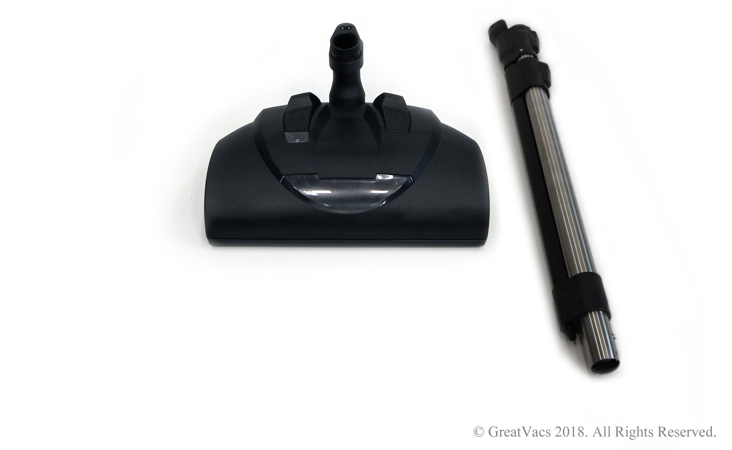 EBK 360 has rubber strip and rubber wheels that make it easier to use not only on carpets, but also on bare floors. It has a 5-position carpet height adjustment which makes it functional for a wide variety of carpet styles. It has locking neck with a release pedal for quick release of wands and a telescopic wand with cord management which saves time while attaching the hose to the wands.