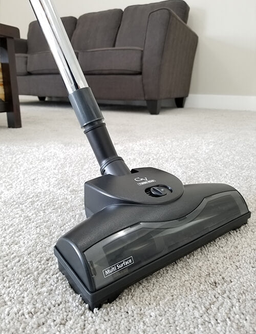 The turbo head with spinning brush roll is ideal for plush carpet and this powerful machine has no problem spinning the brush roll!