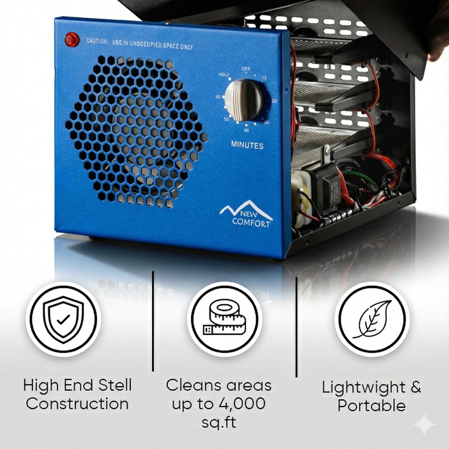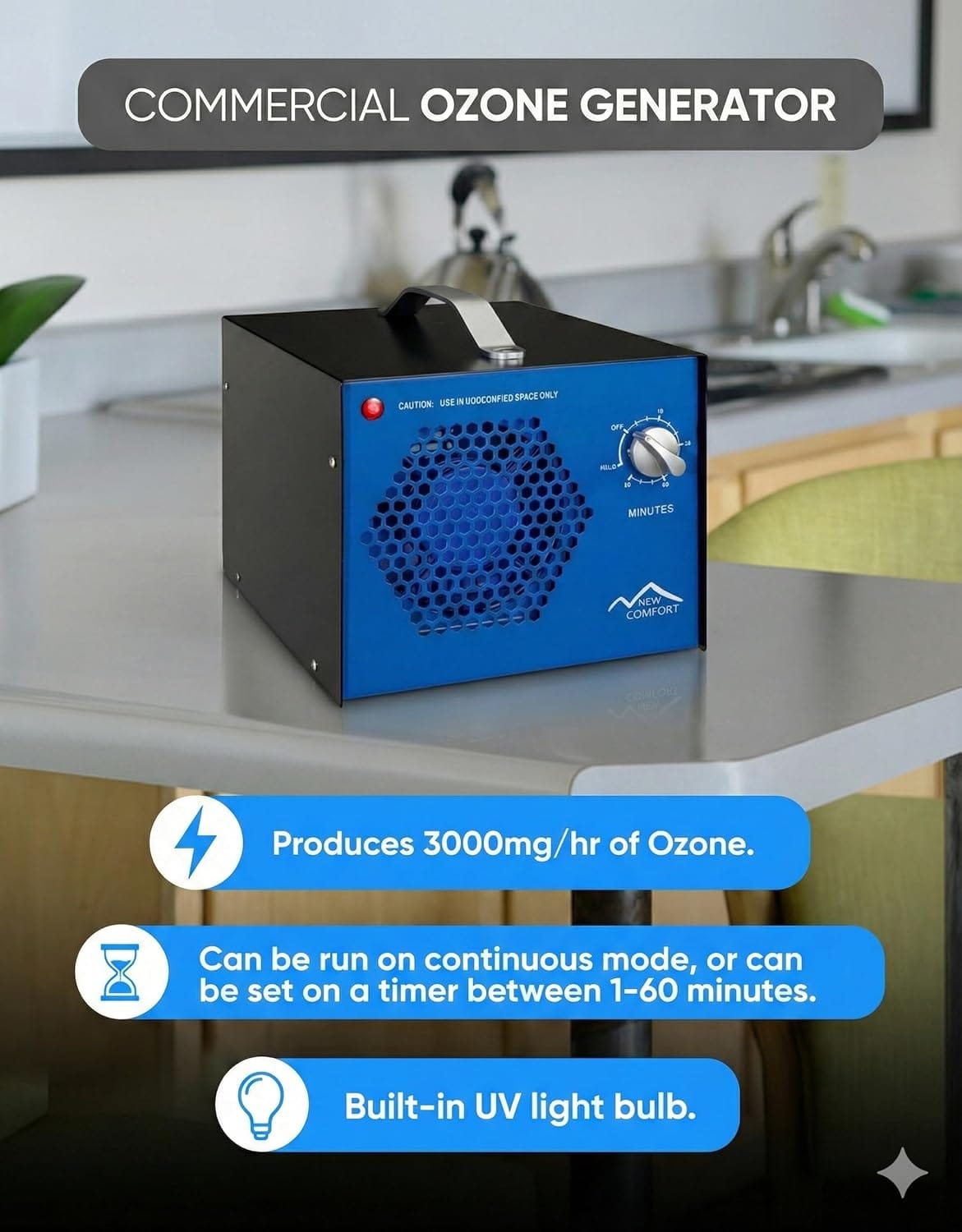ADJUSTABLE SETTINGS: Choose between continuous run for ongoing purification or the convenient 60-minute timer for set-and-forget operation; ensures safe re-entry with no lingering ozone.