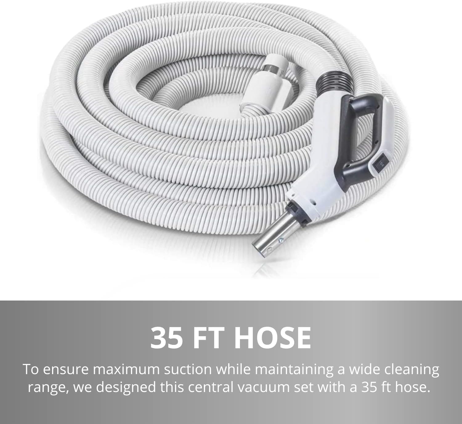 - Premium Prolux 35 ft Universal Central Vacuum Hose Kit With North American Power Nozzle