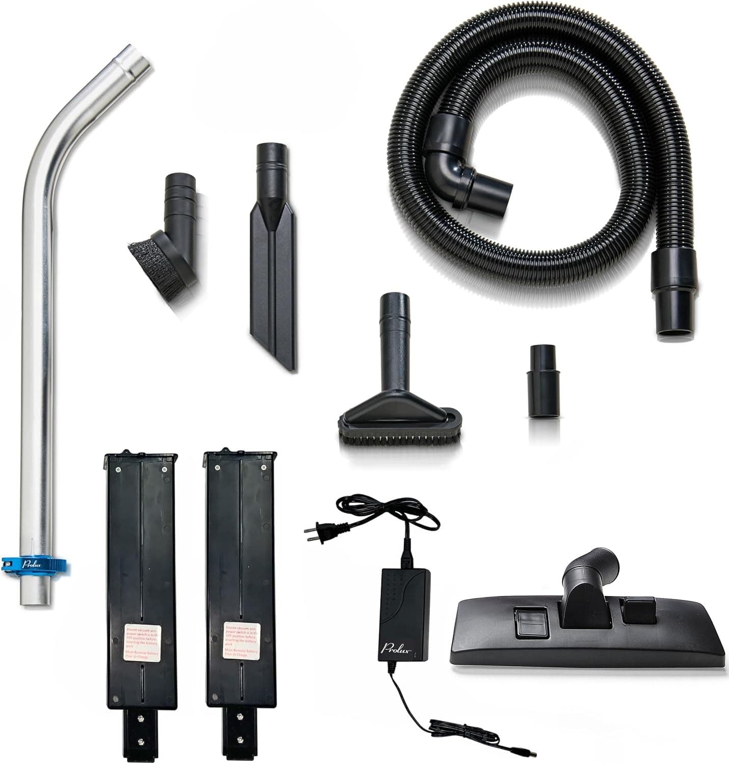 - Cordless Prolux 2.0 - 11 pounds (With Battery Installed), 60 minutes of continuous use, comfortable carry, NO BAGS! NO CORDS! easy to use tools, adjustable, thick, padded straps and looks just enough like a jet pack that you may be able to talk your kids into vacuuming for you.
