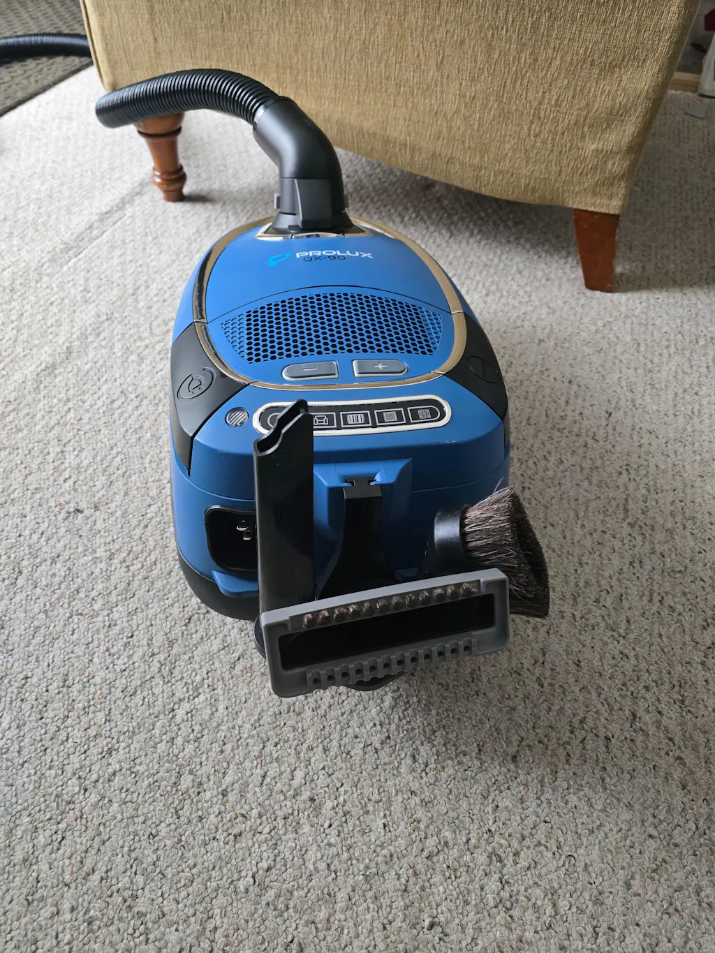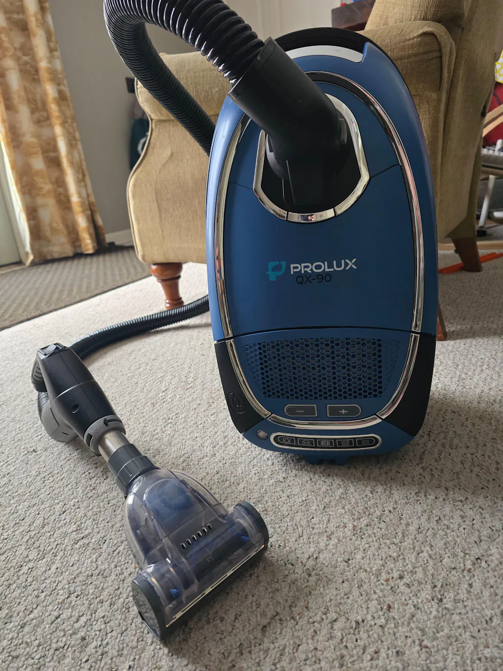 Discover the ultimate home cleaning solution with the Prolux QX90 Canister Vacuum Cleaner. This lightweight yet powerful vacuum is designed to tackle any cleaning challenge, making it the perfect companion for maintaining a pristine home environment. With the renowned Prolux North American power nozzle at its core, the QX90 offers unparalleled suction and cleaning efficiency on various surfaces, from delicate hardwood floors to thick, luxurious carpets. The QX90 is not only powerful; it's also both smart and versatile. Equipped with a full set of onboard tools, a large clog resistant hose, and an extendable wand, this vacuum cleaner ensures that no nook or cranny is left untouched. Whether dusting off curtains, reaching under furniture, or deep cleaning your carpets, the QX90 has you covered with its comprehensive cleaning capabilities. One of the standout features of the Prolux QX90 is its advanced HEPA filtration system. It's a breath of fresh air for anyone concerned about indoor air quality, particularly pet owners and dirt sufferers. Flexibility is another hallmark of the QX90, thanks to its 5 variable suction settings. This feature allows you to seamlessly switch between different cleaning tasks, ensuring you always have the right amount of power without risking damage to sensitive materials. The thoughtful design elements like this make the QX90 not just a vacuum cleaner but a vital part of your home maintenance toolkit. In summary, the Prolux QX90 Canister Vacuum Cleaner is more than just a cleaning device; it's a comprehensive cleaning solution. Lightweight, powerful, and equipped with every tool and feature you need to keep your home spotless, the QX90 stands ready to tackle any challenge. Say goodbye to cumbersome, ineffective cleaning and hello to effortless, efficient home maintenance with the QX90