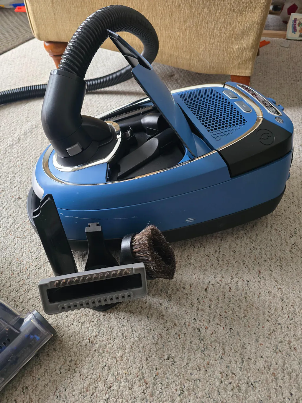 - This also comes with the famous pet mini head tool. This is the popular tool with spinning brushroll that works great for vacuuming upholstery (like cars and couches), stairs, and works awesome at vacuuming up pet hair.