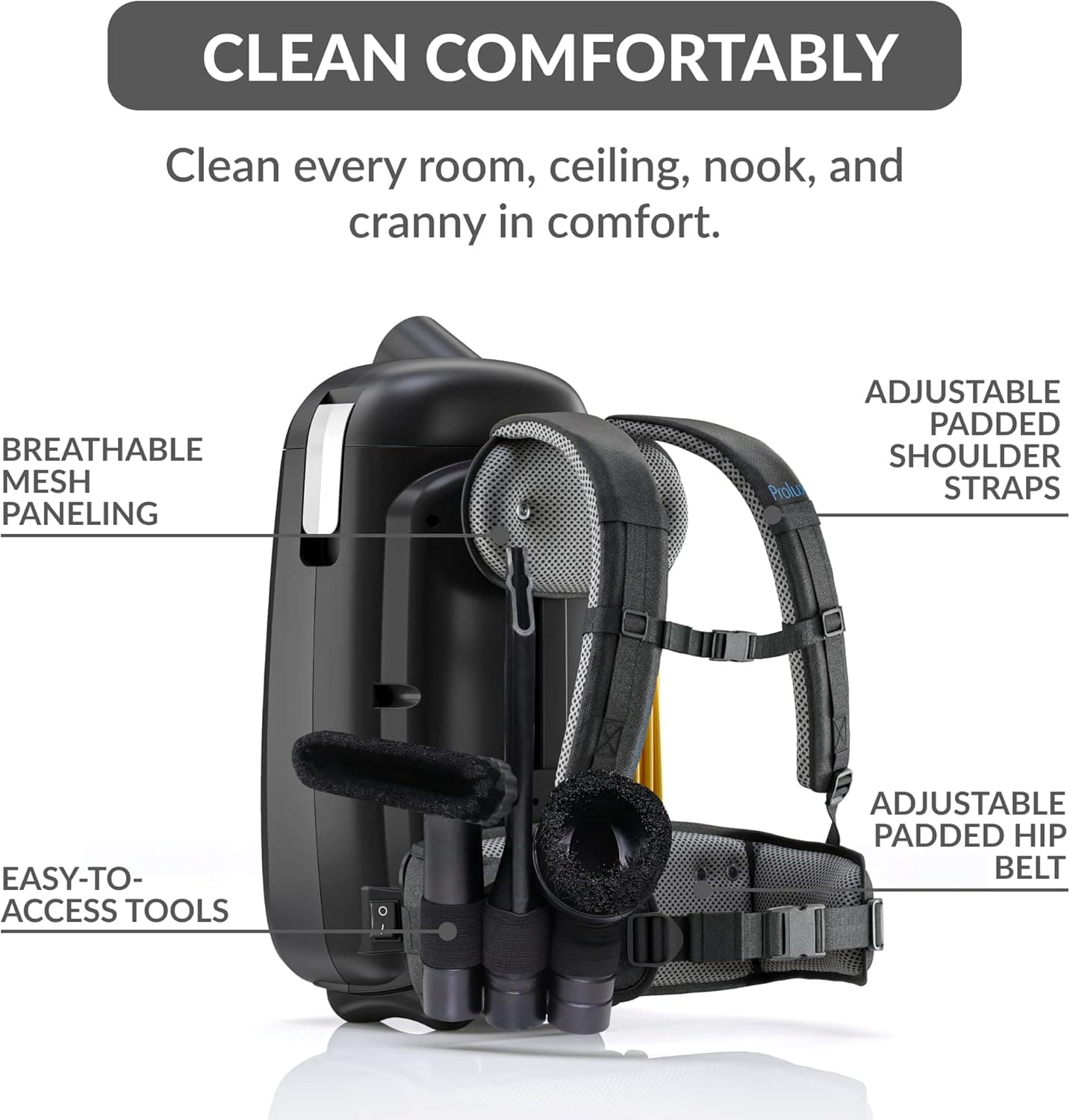 Designed and developed in the USA, our backpack canister vacuum is a testament to quality and durability. The Prolux X8 Pro is your reliable partner for efficient and thorough cleaning, whether for commercial or home use.