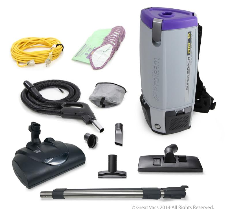 • ProTeam Super Coach Pro Backpack Vacuum - 10 quart capacity, 11 pounds, comfortable carry, easy to use tools and adjustable straps... This vacuum WILL save you time.