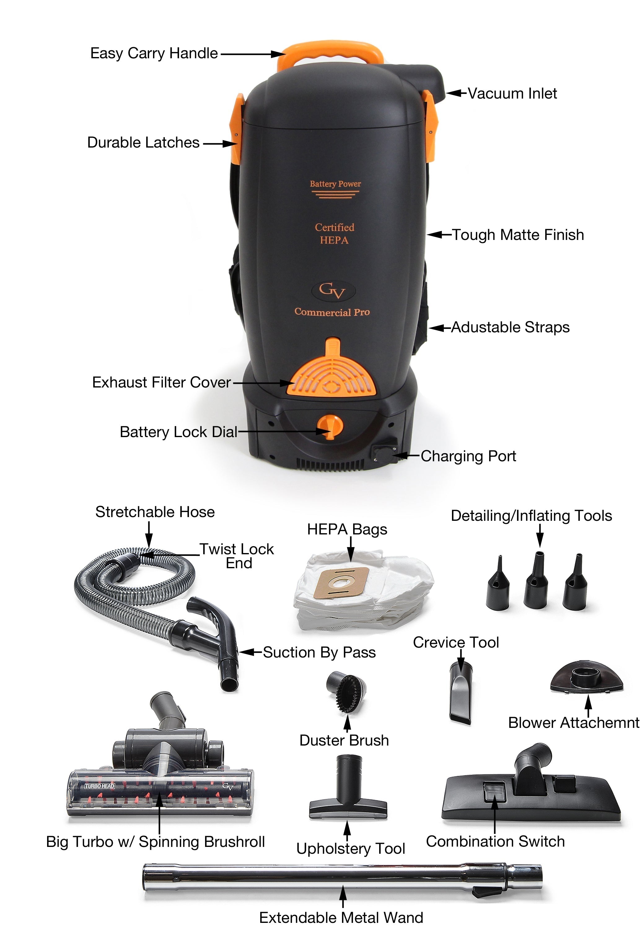 • Tools For Every Job - Quickly knock out all of your cleaning needs with the GV standard house hold tool kit, detailing blower tips and pet hair annihilating GV turbo nozzle.