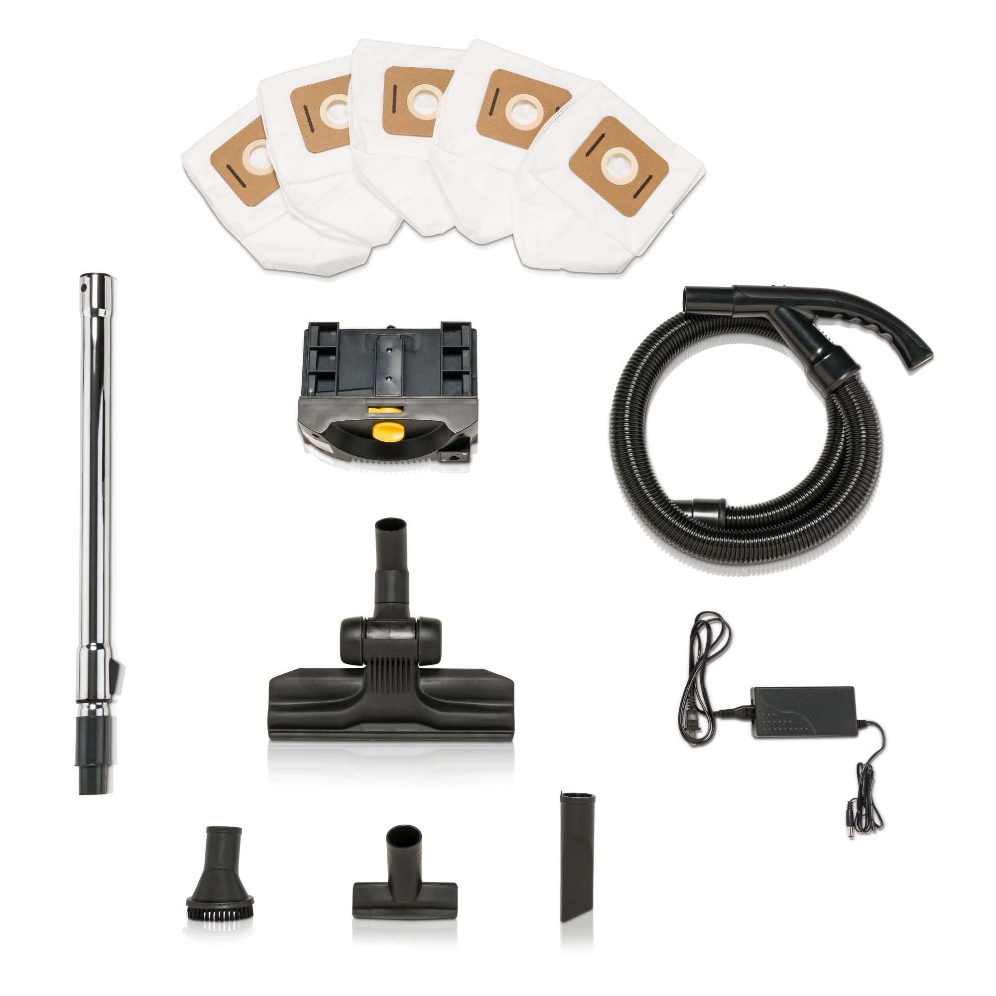 • LOADED with Easy to use tools! Premium tools include: crevice tool, duster brush, upholstery tool, and deluxe floor tool. The floor tool is a high end design and works really well on both hardwood, tile floors or low pile rugs and carpet. Adjustable telescopic metal wand so you can adjust the vacuum for the perfect height for you. Also comes with 6 HEPA bags (one pre installed) so you don't have to worry about new bags for a long time. We also sell additional bags which are a very common style so they can be found many places.