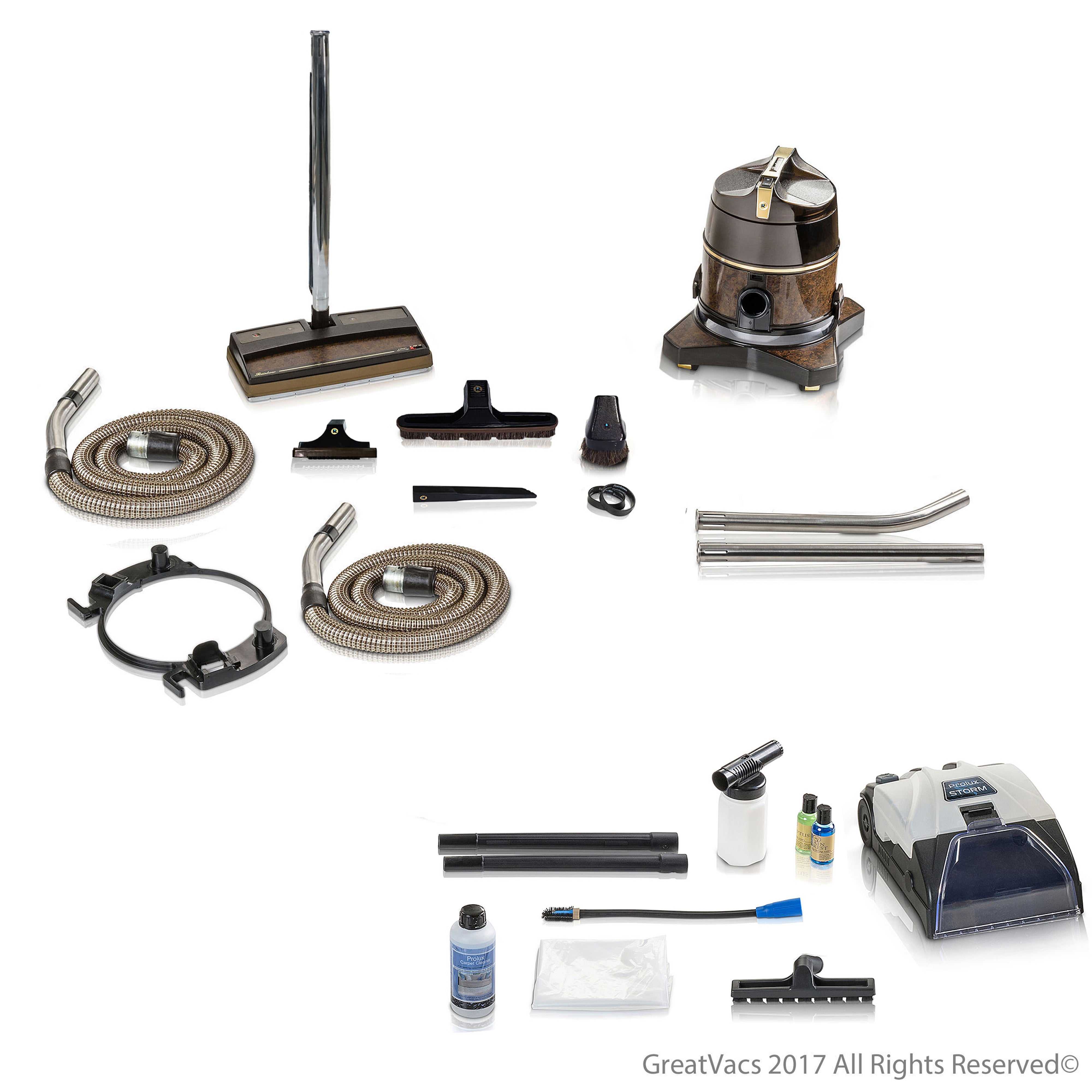 10pc Prolux Storm Shampooer Kit Includes - Prolux Storm Shampooer Kit, Handheld Shampooer, Squeegee Floor Tool, Combo Coil/Inflation Tool, 2 x Pillow/Blanket Cleaning Bags, 2 x Black Plastic Wands, 2 x Fragrance Bottles and a Bottle of Cleaning Solution