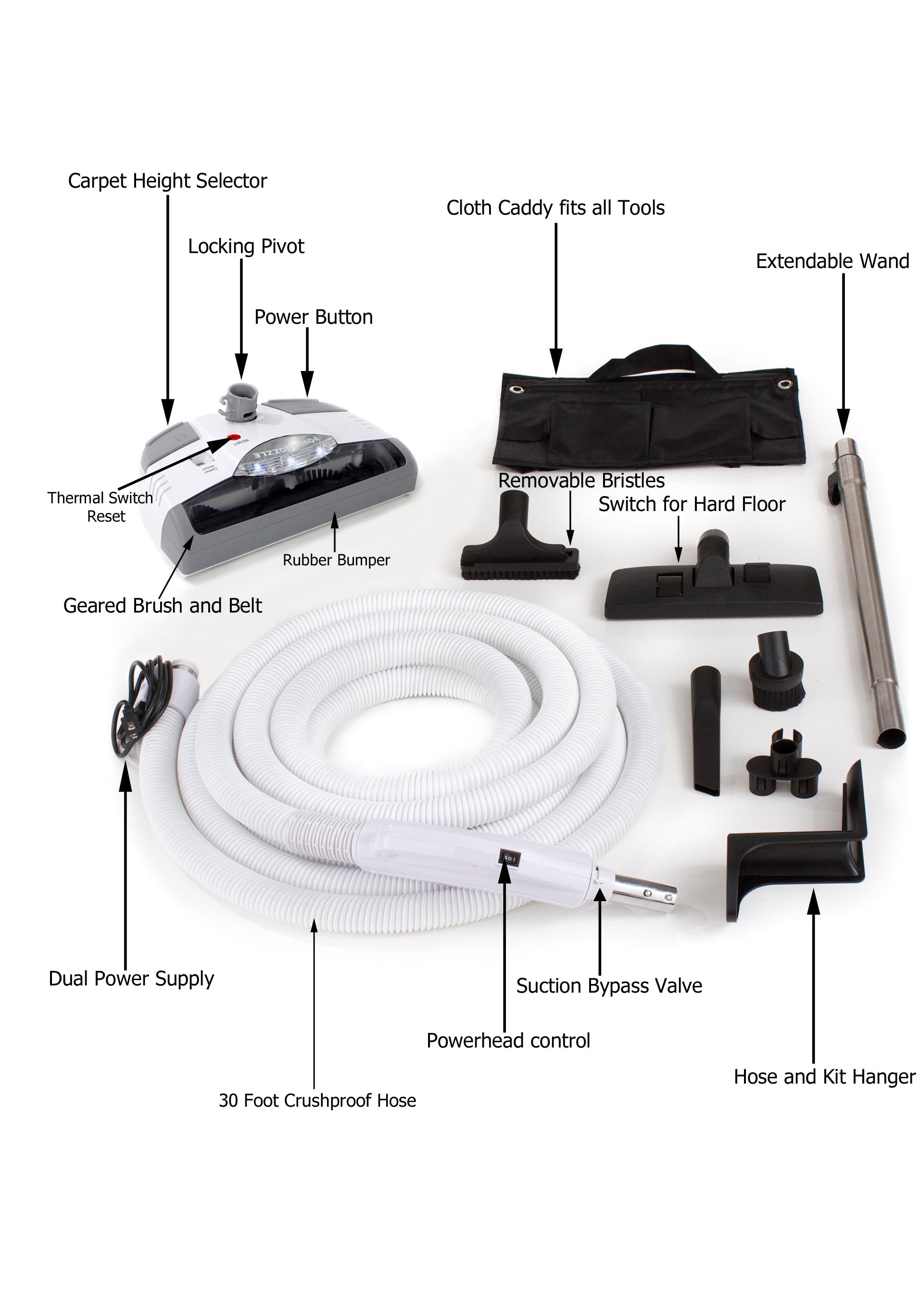 Universal Fit Electric Whole-Home Central Vacuum Hose system with Power Head