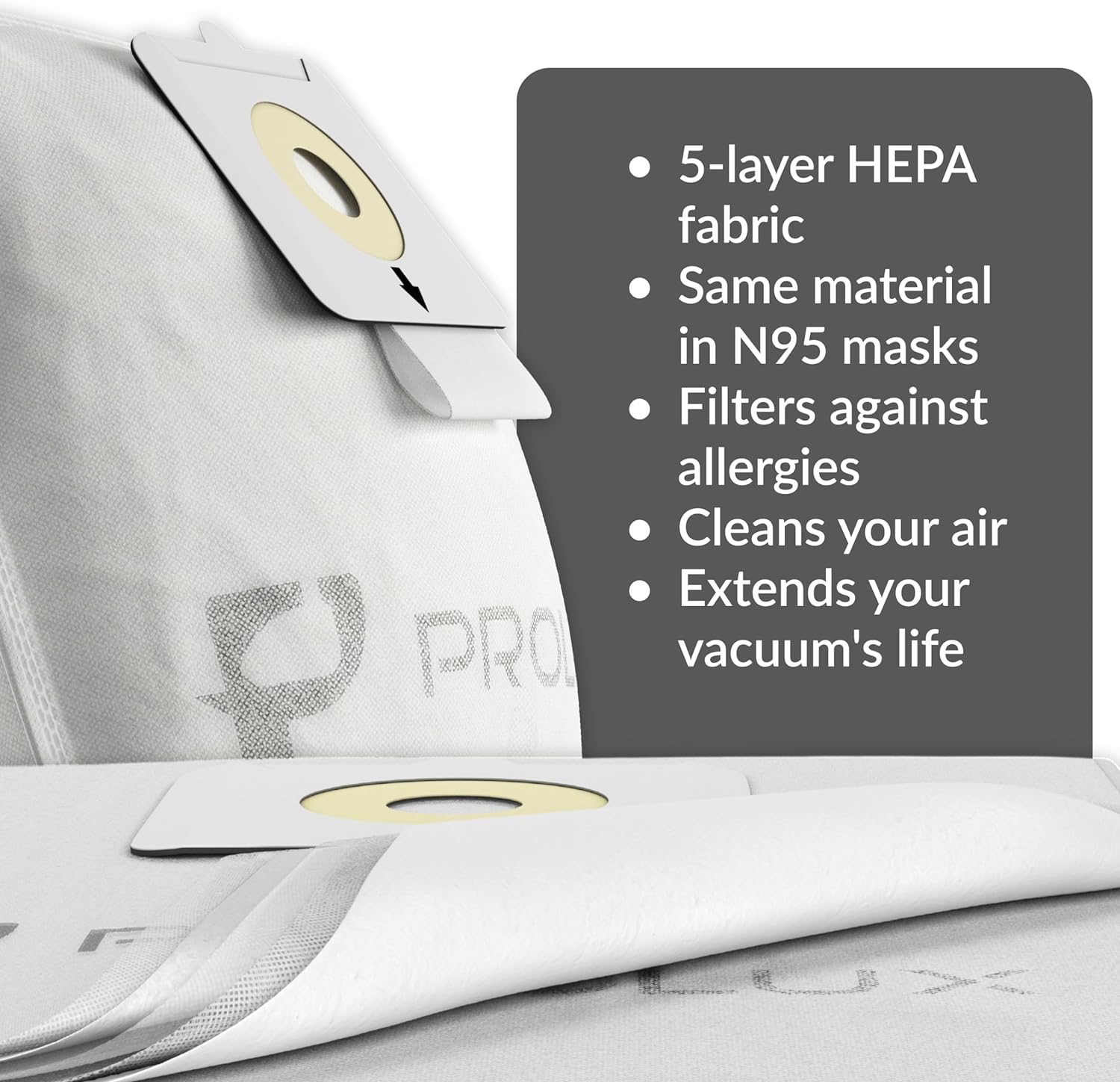 10 pack of HEPA bags for the Prolux 6000 / 7000 / 8000 / 9000 series upright vacuum cleaners