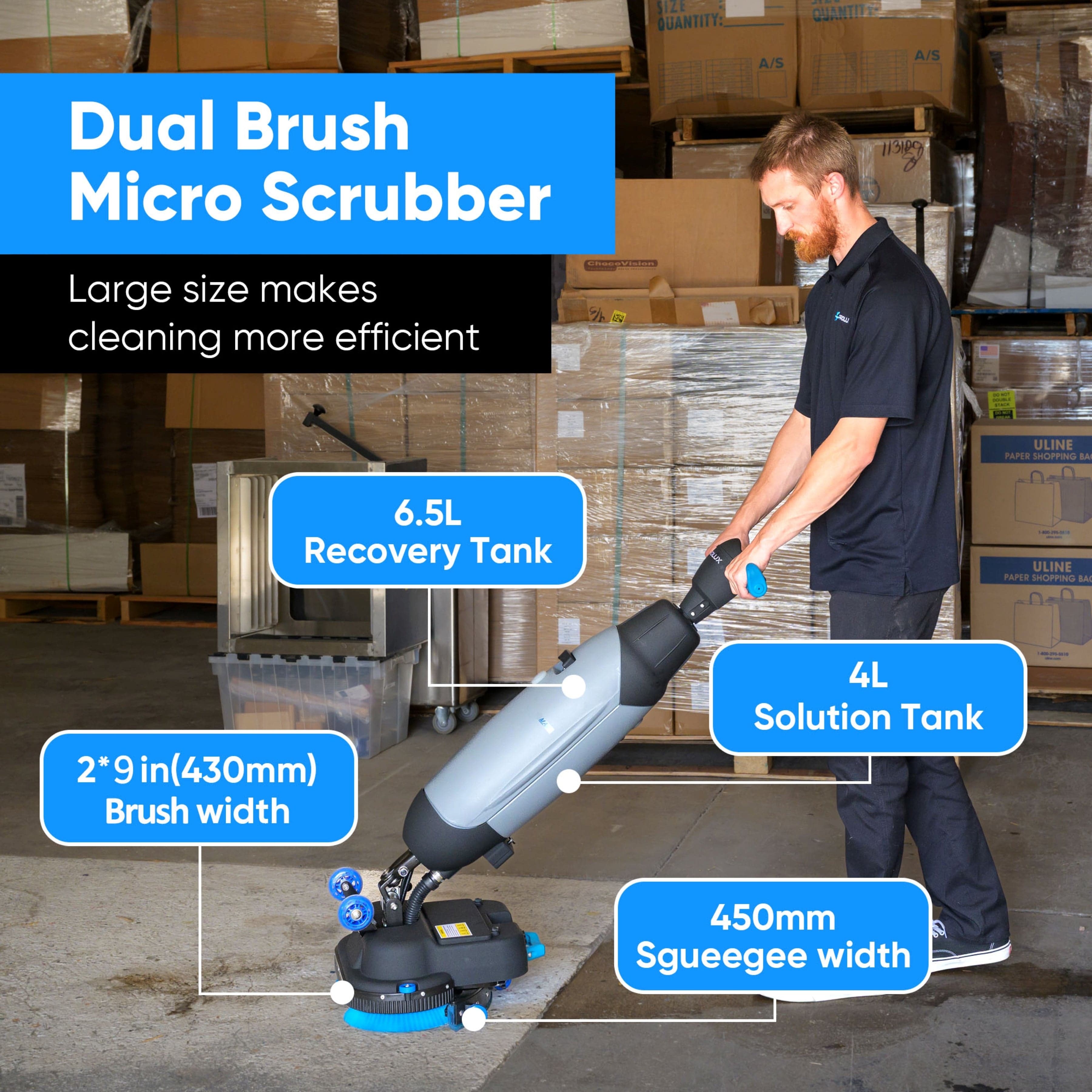 Prolux PLCC430BN Cordless Commercial Micro Dual Brush Floor Cleaner, Scrubber and Buffer
